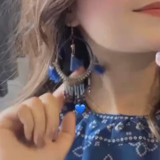 Uswa Zia 3 piece stiched suit made with swiss lawn fabric. Printed design in blue color. Comes in medium size.