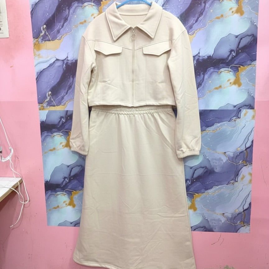Stylish 2 Piece Set Long Frock Maxi Dress With Matching Zipper Jacket Is Specially Designed To Deliver Premium Quality With Fashionable Design Making It A Smart And Practical Choice For Daily And Special Wear. The Set Is 100 Percent New And Good Quality With Good Stitched Detailing That Ensures Long Lasting Performance. Ready To Wear Construction Provides Convenience While Easy Wash Feature Adds Comfort In Maintenance. The Combination Of Chic Long Frock Or Maxi Dress With Perfectly Matching Zipper Jacket Offers Super Quality And Attractive Appearance. For Long Lasting Life We Recommend Hand Wash Which Maintains Fabric Strength And Overall Elegance. Stylish 2 Piece Set Is A Reliable Choice For Achieving Modern And Confident Look.